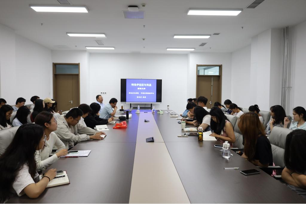 讲座伊始,徐松岩教授以沉浸式史料展示拉开序幕。通过希腊爱琴海地区的地理风貌图谱、奥德修斯智斗塞壬女妖的古典版画复刻、迈锡尼文明 "阿伽门农" 金面具的考古影像等多维度视觉史料矩阵,构建起特洛伊文明的立体认知框架。这些跨越三千年时光的图像叙事,既呈现了青铜时代地中海文明的地理坐标,又通过英雄史诗的视觉转译唤醒神话记忆,更以考古实证揭开迈锡尼王权的神秘面纱,为学生开启了通往特洛伊古城的时空隧道。
