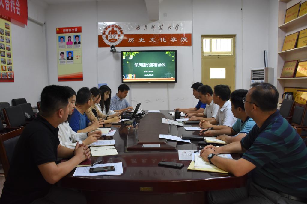 6月16日下午,快猫视频 于文史楼二楼会议室召开学风建设部署会议。快猫视频 党委书记尹明法、院长成积春、党委副书记王建阳、副院长王京传、副院长吕厚轩、副教授韩锋、研究生辅导员孙锋、本科生辅导员刘贤贤、刘润欣、蔺琦琦、闫浩参加会议。
