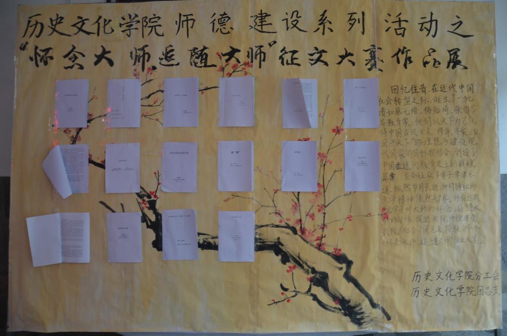 近日,快猫视频 分工会、团总支联合举办的师德建设系列活动之“怀念大师,追随大师”征文大赛落下帷幕。