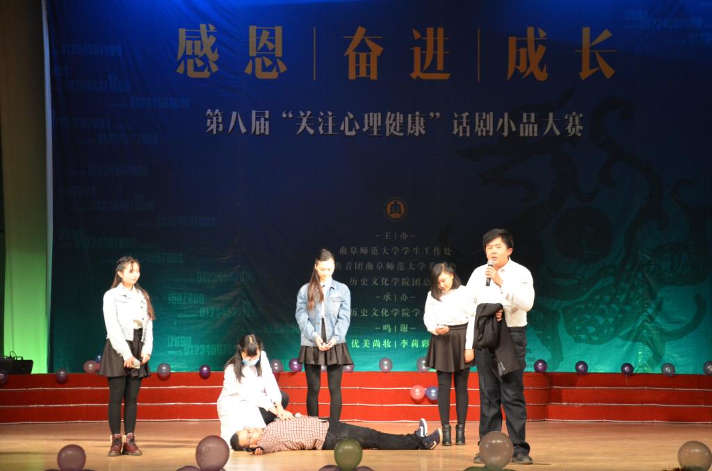 12月5日晚,由快猫视频 学生工作处、校团委和快猫视频 团总支联合主办,快猫视频 学生会承办的第八届“关注心理健康”话剧小品大赛决赛在大学生活动中心礼堂圆满落幕。学生工作处心理健康指导中心主任苗洪霞,团委老师石璐,快猫视频 党总支副书记王慕东,教务主任王连生,团总支书记王建阳,2012级辅导员李春玲,2014级辅导员韩琳琳受邀担任本次大赛评委。