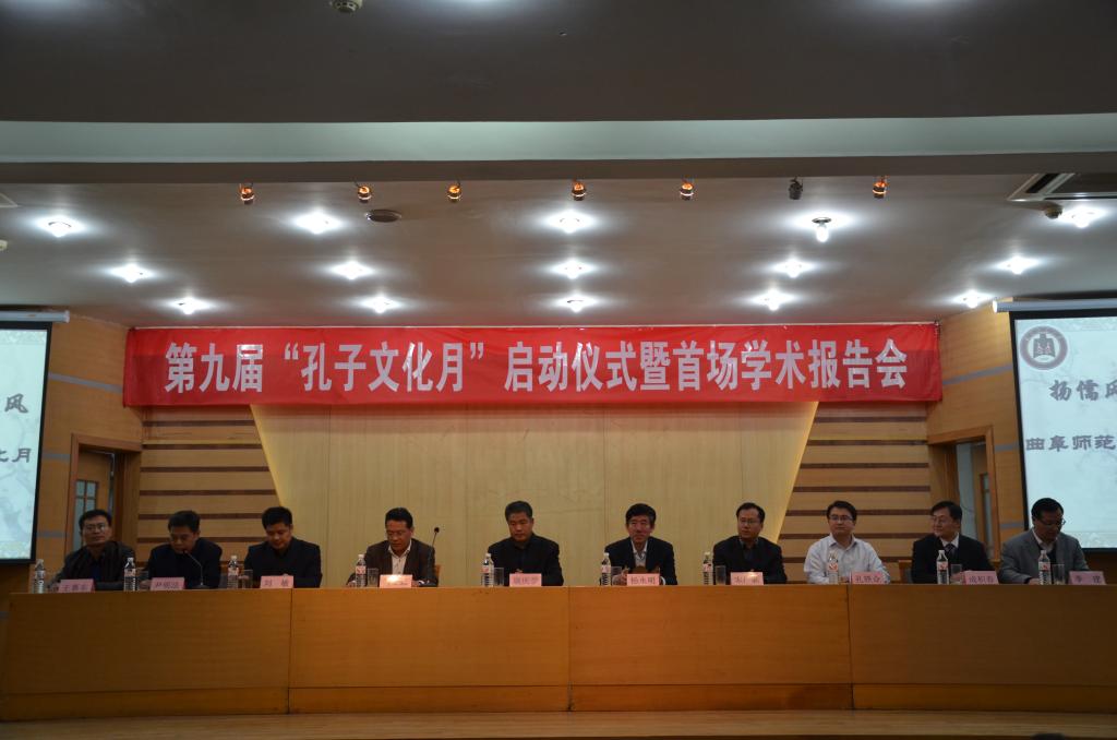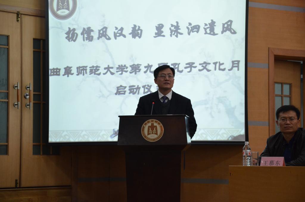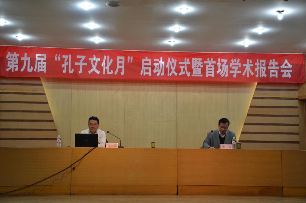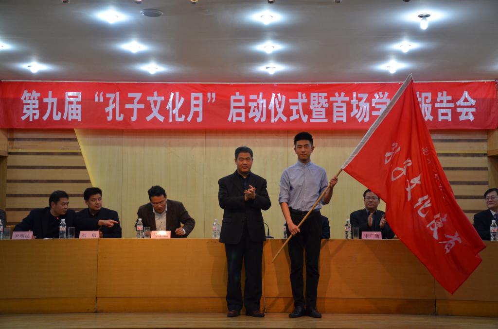 3月31日晚,快猫视频 第九届“孔子文化月”启动仪式暨首场学术报告会在孔子会堂举行。党委常委副校长扈庆学出席仪式,并为孔子文化使者代表授旗。