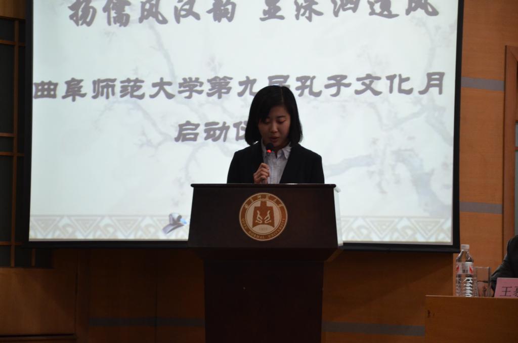孔子文化使者代表王艺璇发言,承诺将切实履行好“孔子文化使者”的职责,提高自身修养,学习、继承、弘扬优秀传统文化,全心全意为“孔子文化月”服务。