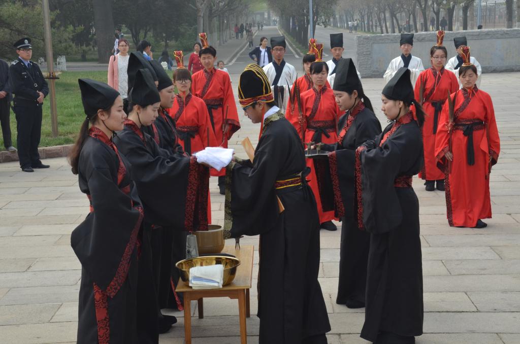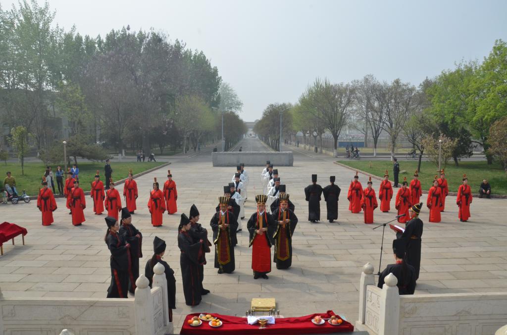 4月9日上午,第九届“孔子文化月”系列活动之释奠礼展演于孔子文化广场举行。