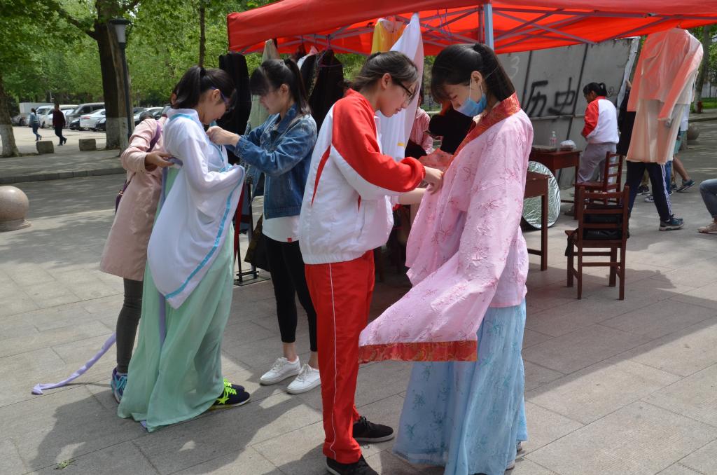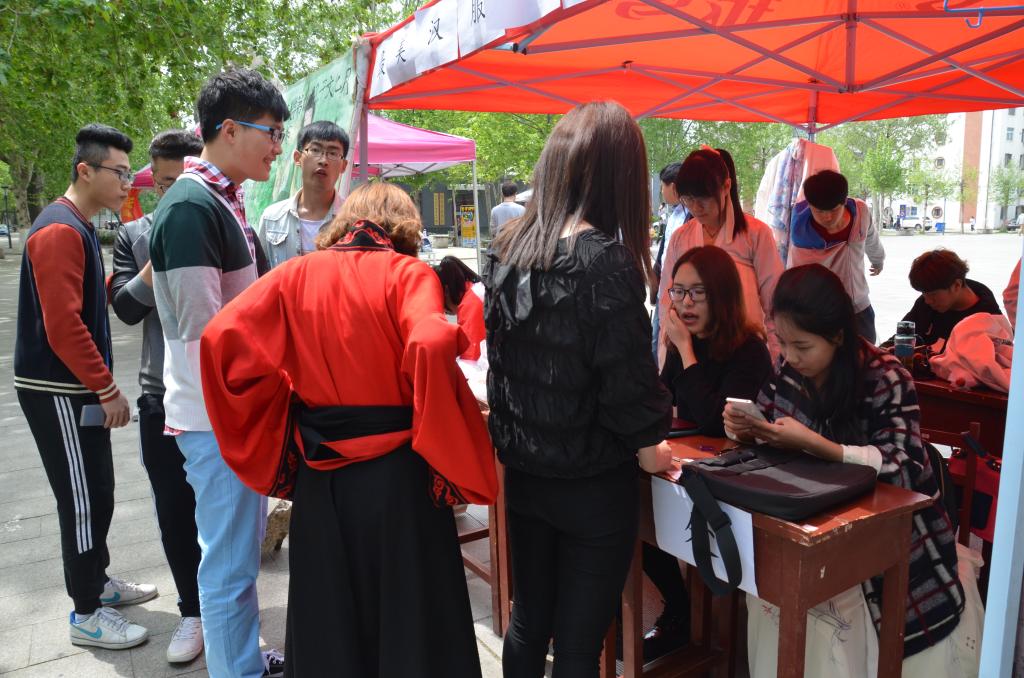 4月17日,快猫视频 在大学生活动中心前举办了“最美汉服代言人”的海选活动。