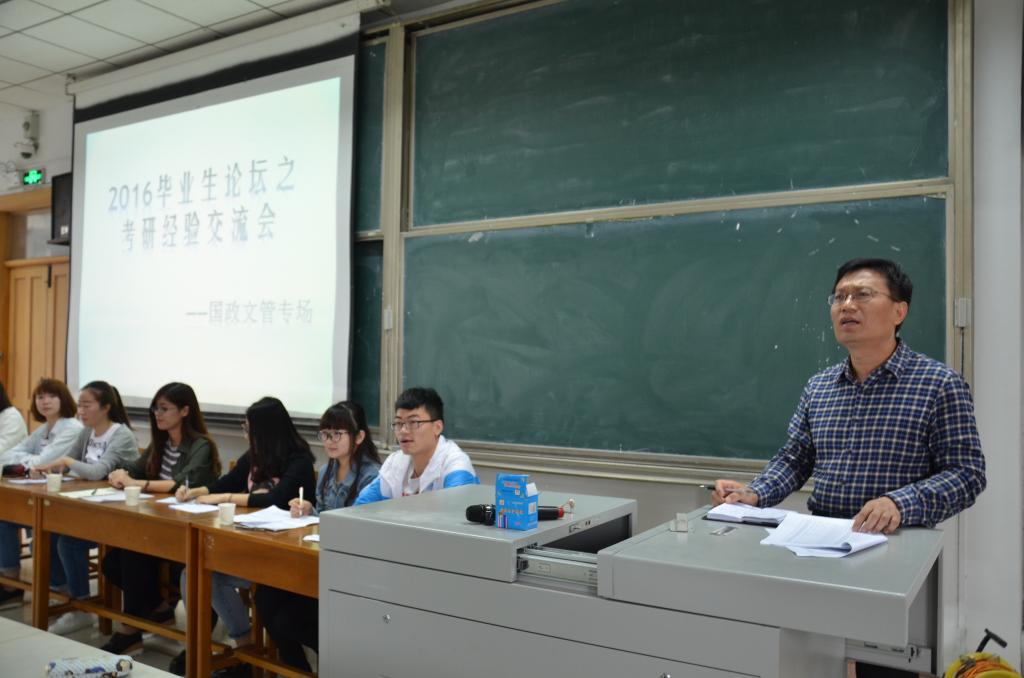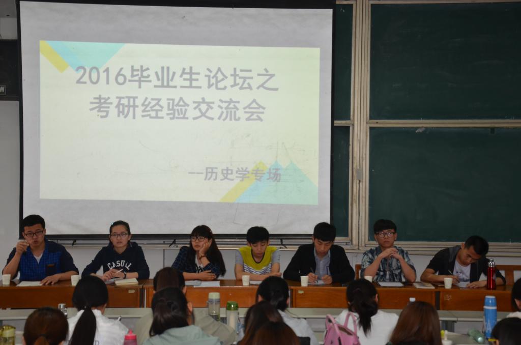 5月9日上午,由快猫视频 团总支主办,学生会就业服务部承办的2016年毕业生论坛之考研经验交流会在综合楼401举办。本次交流会分为国际政治、文化产业管理专场和历史专业专场,共邀请了16位考研成绩优异的12级学生与在场同学进行交流,快猫视频 党总支副书记王慕东主持本次交流会。