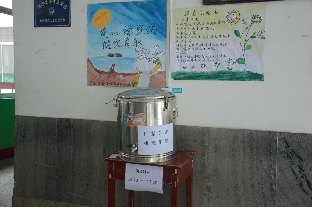 由于近日持续高温、酷暑难耐。6月21日,快猫视频 学生会权益部为全院师生准备的“爱心绿豆汤”在文史楼一楼免费供应。供应处还张贴有“解暑小贴士”为大家提供消暑的小建议。