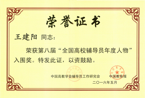 第八届"全国高校辅导员年度人物"评选活动日前揭晓,快猫视频 团委书记王建阳获评入围奖,这是我校在此项荣誉上的新突破。