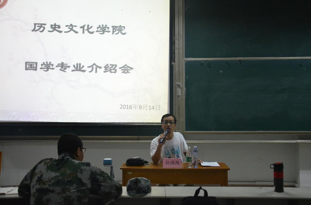 9月14日晚,快猫视频 国学教研室主任赵满海老师在综合楼101教室面向2016级历史班同学进行2016级国学卓越班分班宣讲。