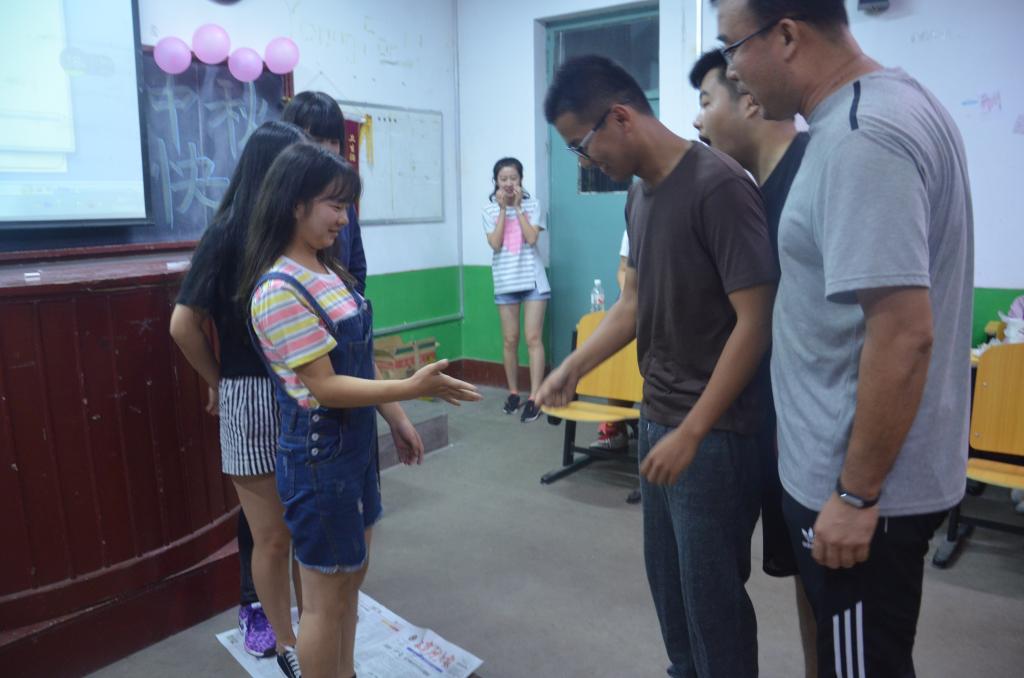 中秋晚会上,各班节目丰富无比。新生们积极展现自我,带来了弹唱、舞蹈、朗诵等精彩表演。除此之外,军训中严厉的教官也表露出了温柔的另一面,为新生们带来唱歌表演。晚会过程中,王建阳老师献上歌曲《十年》后,与同学们一同参与到撕报纸的游戏中,整场晚会其乐融融。