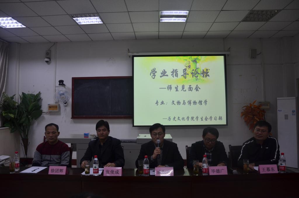 10月27日晚,快猫视频 2016级文物与博物馆学专业师生见面会在文史楼520室举办。快猫视频 院长成积春,文物与博物馆学专业副教授毕德广, 16级文物与博物馆学专业导师徐团辉,14级国学班导师张俊成,快猫视频 党委副书记、2016级文物与博物馆学辅导员王慕东出席了此次见面会。见面会由王慕东主持。
