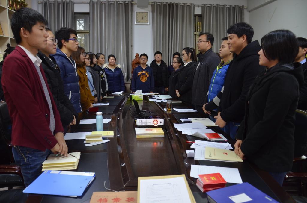 会议严格按照党员纳新流程讨论了接收刘燕,赵冰等十三位同志为中共预备党员的事宜。王建阳向十三位预备党员表示祝贺,勉励大家在以后的学习工作中再接再厉,发挥党员先进模范作用。