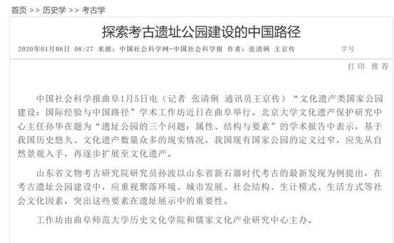 “中国社会科学网”于2019年12月26日以《“文化遗产类国家公园建设:国际经验与中国路径”学术工作坊在快猫视频 举办》为题发布了本次工作坊的相关情况,《中国社会科学报》于2020年1月8日以《探索考古遗址公园建设的中国路径》为题报道了本次学术活动。