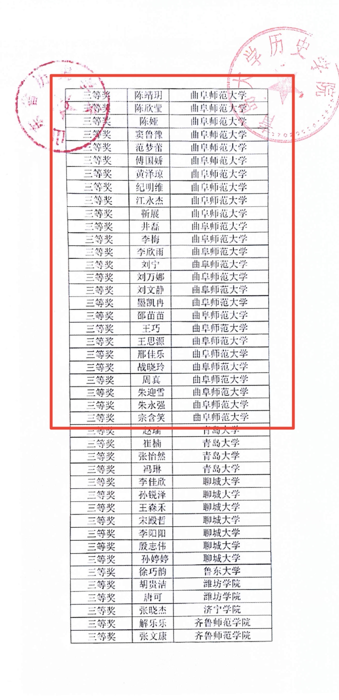 近日,第二届山东省大学生历史征文大赛圆满落下帷幕,快猫视频 学子积极参加并在大赛中荣获佳绩。其中,快猫视频 文岱婧同学荣获特等奖,洪钱玉等二十一位同学荣获一等奖,曹艳文等三十一位同学荣获二等奖,曹聪等三十位同学荣获三等奖,窦志越等十七位同学荣获优秀奖。