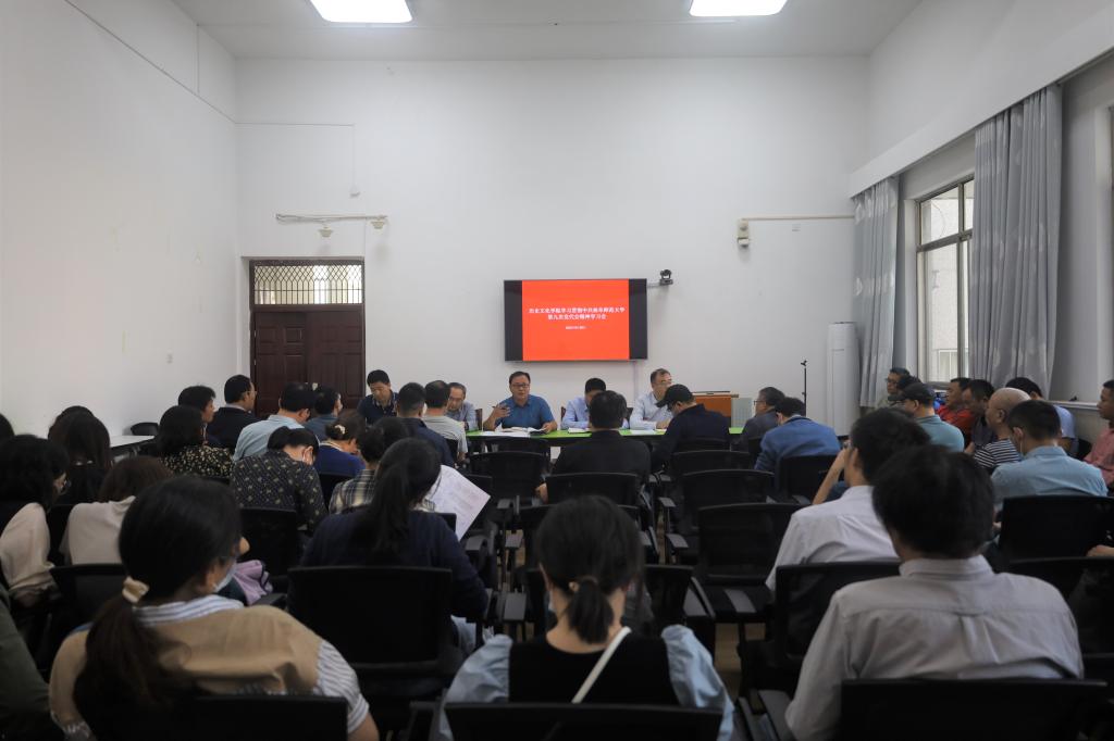 9月27日下午,学院召开全体教职工大会,围绕“全面学习贯彻学校第九次党代会精神”进行宣讲。号召全体教工以高度的思想自觉、政治自觉和行动自觉全面贯彻落实好党代会精神。学院党委将党代会学习列入每月支部组织生活计划,组织专题学习。随后,各支部围绕党代会精神,采取集体学习与个人自学相结合的方式展开学习,全院上下迅速掀起学习宣传贯彻学校党代会精神的热潮。
