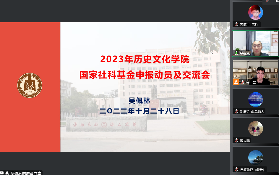 2022年10月28日晚上,快猫视频 召开2023年度国家社科基金申报动员及交流会,总结2022年度国家社科基金申报情况,启动学院2023年度国家社科基金申报工作。院长吴佩林教授、副院长吕厚轩及学院39名教师参加此次会议,会议由张世慧副教授主持。