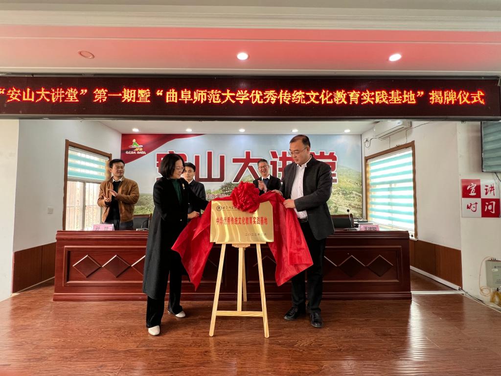 3月25日,快猫视频 传统文化教育基地暨“安山大讲堂”第一期揭牌仪式在小安山镇举行。梁山县县委宣传部常务副部长李雪、小安山镇党委书记周刚、快猫视频 党委副书记王建阳参加本次揭牌仪式。