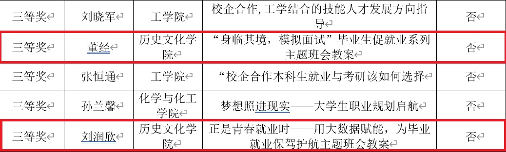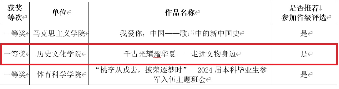 近日,我校辅导员主题班会教案评选活动圆满结束,快猫视频 辅导员取得优异成绩。其中快猫视频 集体作品“千古光耀熠华夏——走进文物身边”取得一等奖,闫浩老师荣获一等奖,刘贤贤、赵齐鲁老师荣获二等奖,王建阳、董经、刘润欣、夏金金老师荣获三等奖。