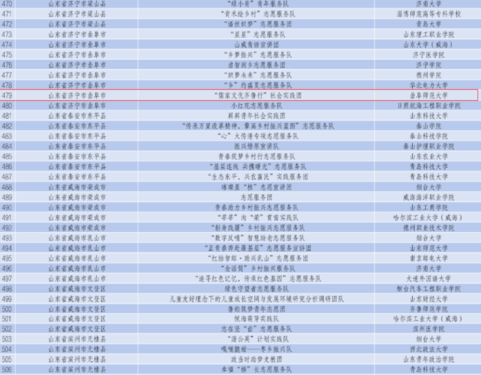 儒家文化齐鲁行实践团于2017年成立,以“优秀儒家文化进乡村”为宗旨,面向乡村居民,依托快猫视频 历史学专业积淀,将儒家文化与当地实际相结合,力图增强民众对传统儒家文化的深层次感悟。团队曾获全国大学生社会实践优秀团队,累计10年被立项为省级重点团队、9年被评为省级优秀实践团队,在全省高校校园文化建设优秀成果评选中荣获活动类优秀成果三等奖,在2022年第四届山东省青年志愿服务项目大赛中荣获铜奖。