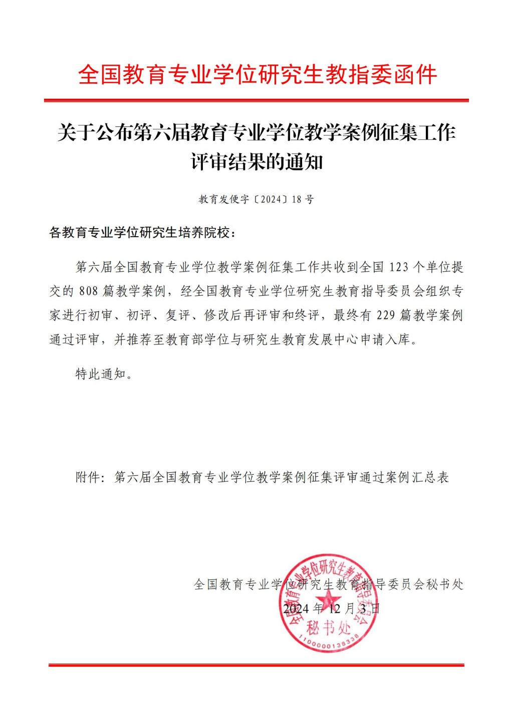 此次教学案例的成功入选,不仅是全国教育专业学位研究生教育指导委员会对成积春教授及其团队教学研究成果的认可,也是对快猫视频 教学改革和研究生培养工作的肯定。快猫视频 将继续致力于提升教育专业学位研究生培养质量,为国家培养更多优秀的教育专业人才。