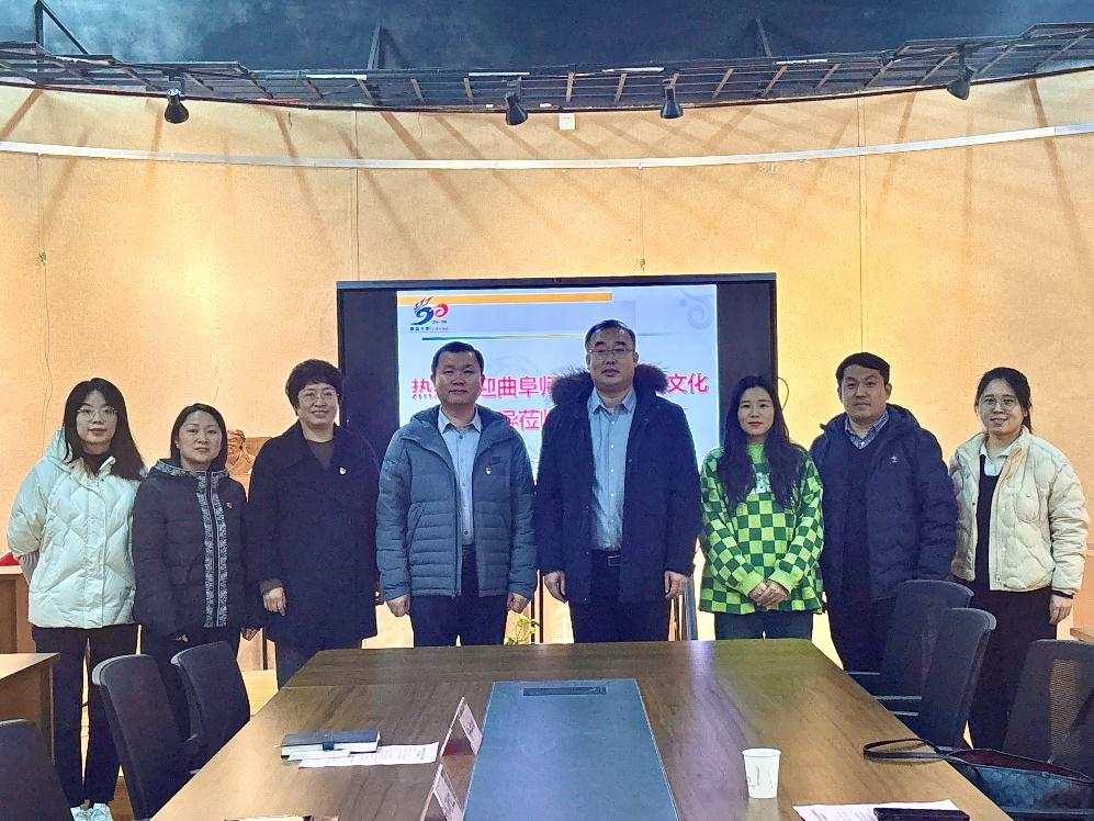 12月11日,快猫视频 党委副书记王建阳、团委书记刘贤贤、辅导员夏金金赴聊城大学美术与设计学院进行调研交流。聊城大学美术与设计学院党委书记杨庆实、党委副书记、副院长孙研红、团委书记孔德滕、辅导员许中美、党委组织员张雅琪参加会议。会议由孙研红主持。