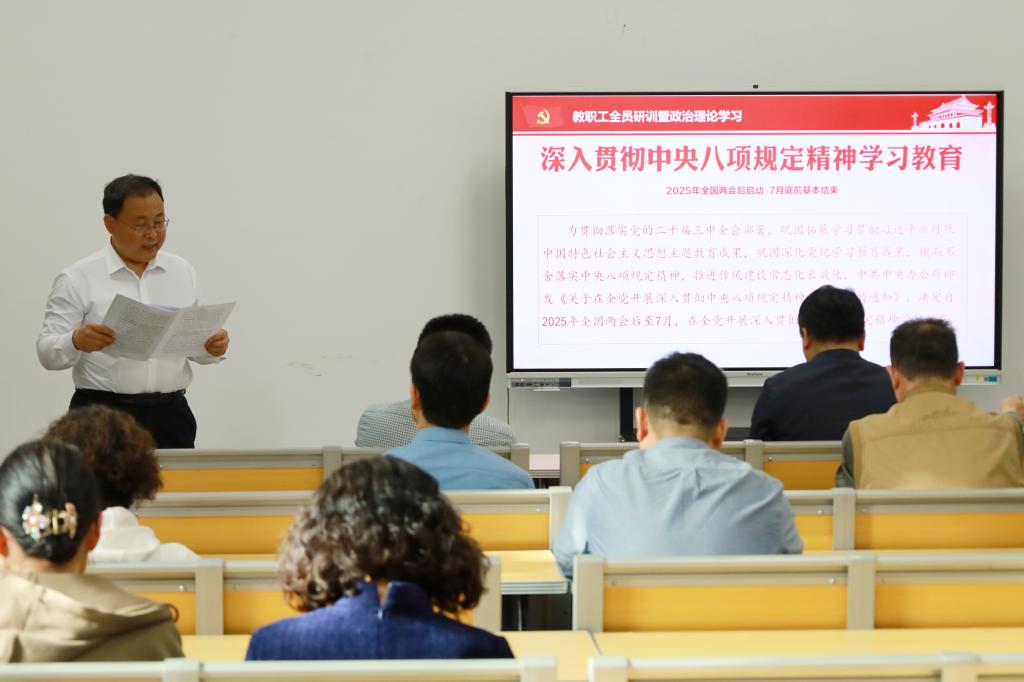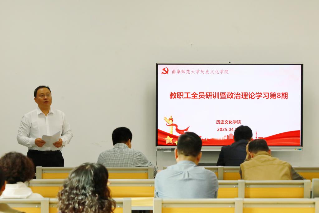 2025年4月16日下午,快猫视频 在孔子书院B106教室开展教职工全员研训暨政治理论学习第8期。活动由学院党委书记姜开勇主持,在校教师50余人参加。
