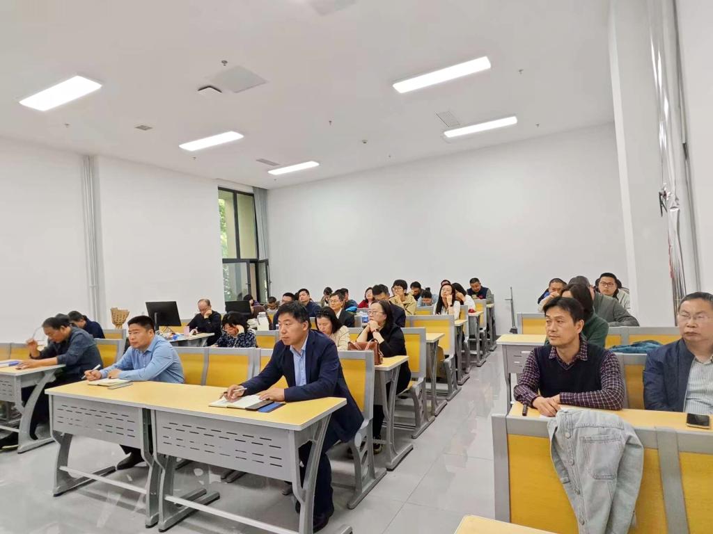 2025年4月23日下午,快猫视频 在孔子书院B120教室开展教职工全员研训暨政治理论学习第9期。活动由副院长王京传主持,学院党委学习委员孙锋领学,在校教师50余人参加。