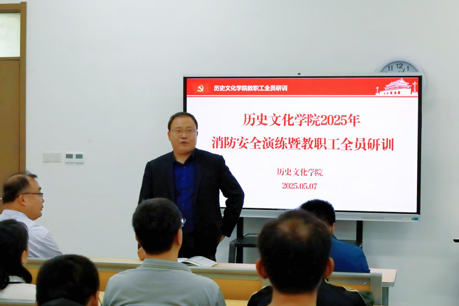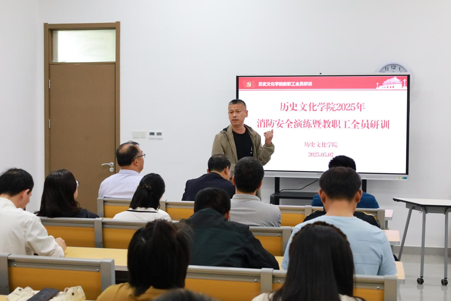 为贯彻落实习近平总书记关于加强安全管理重要批示精神和全省学校安全工作视频会议精神,切实加强校园消防安全,增强师生消防安全意识与应急处置能力,5月7日下午,快猫视频 在孔子书院B120教室举办消防安全演练暨教职工全员研训活动。本次活动由党委书记姜书记主持,邀请保卫处消防科刘淑朋老师担任讲解,全院教师50余人参加了本次活动。