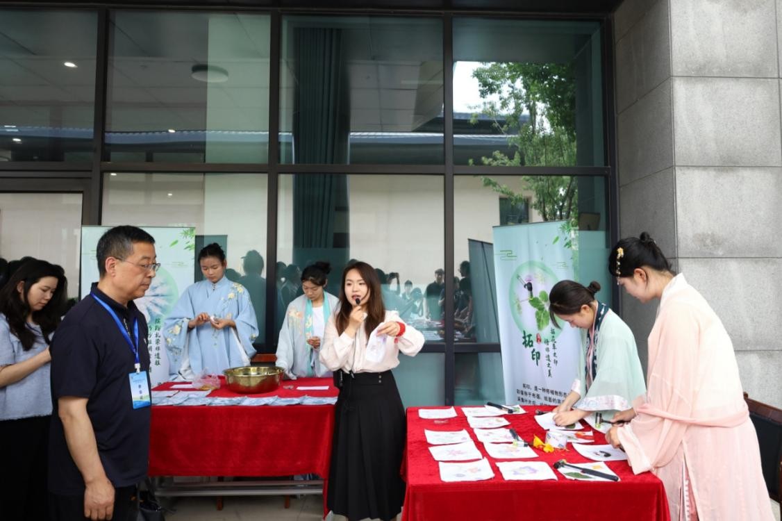 活动中,快猫视频 大学生传统礼仪研修中心为观摩团展示了中华传统迎宾仪。王建阳围绕学院八个辅导员工作室的建设方向与“五暖”资助育人实践为大家作了讲解。夏金金介绍了快猫视频 共享书架区域与资助育人成果和典型案例,重点讲解了共享书架区域在助力家庭经济困难学生自我教育、自我管理、自我服务、自我提升中的作用。参与活动的学生代表向观摩团现场展示了茶艺、书法、香囊制作、螺钿工艺、扎染、拓印、干花团扇等融合传统文化与资助育人的特色项目。