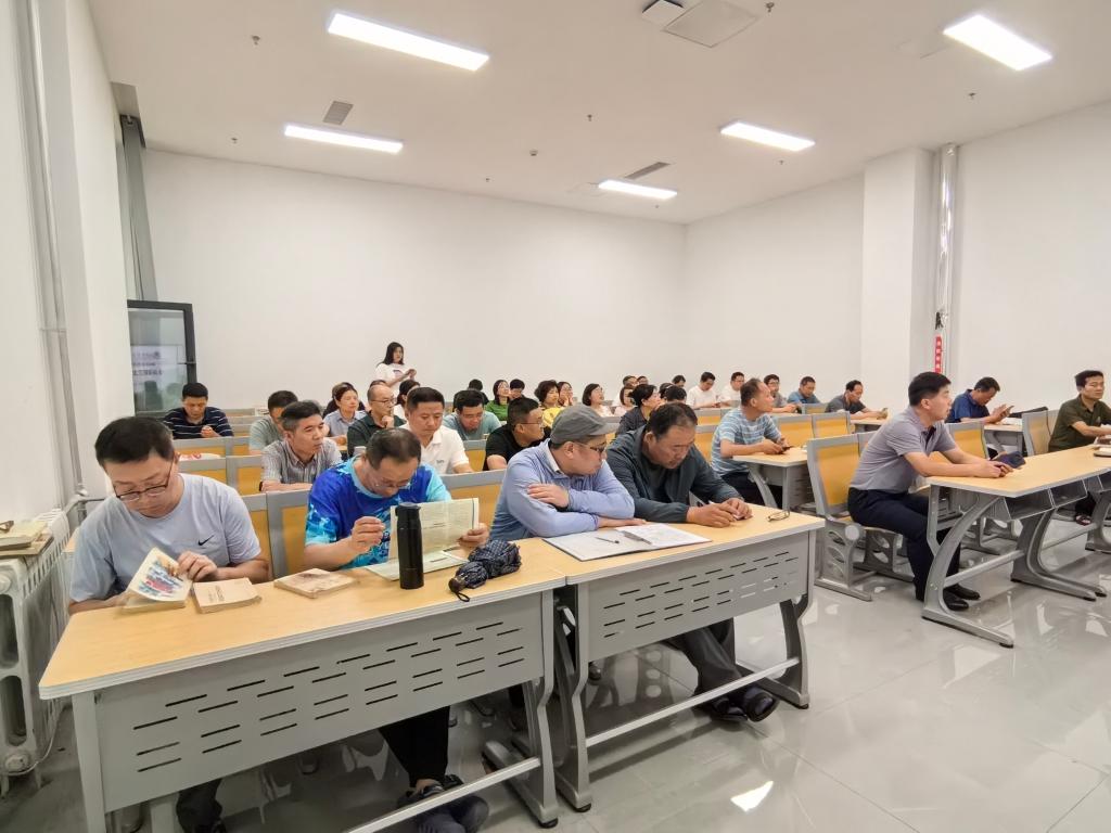 2025年6月18日下午,快猫视频 在孔子书院B120教室举行教职工全员研训暨政治理论学习第17期活动。活动由学院党委书记姜开勇主持,学院党委学习委员孙锋领学,在校教师近60人参加研训。