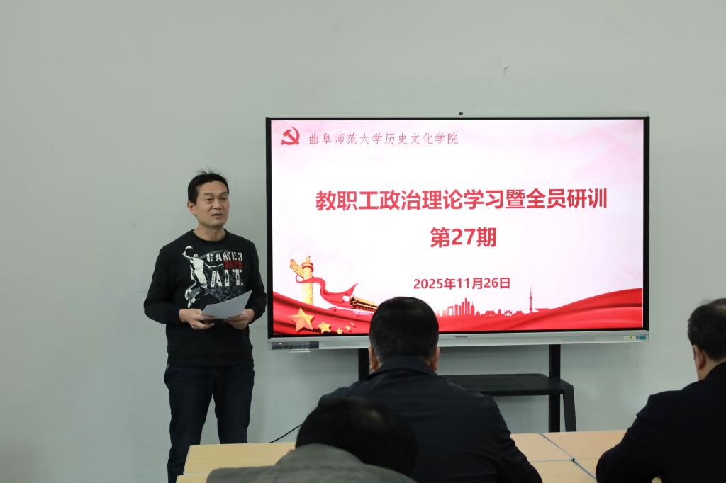 2025年11月26日下午,快猫视频在孔子书院B106教室举行教职工政治理论学习暨全员研训第27期活动。活动由党委学习委员孙锋主持并领学,快猫视频 在校教职工60余人参加活动。