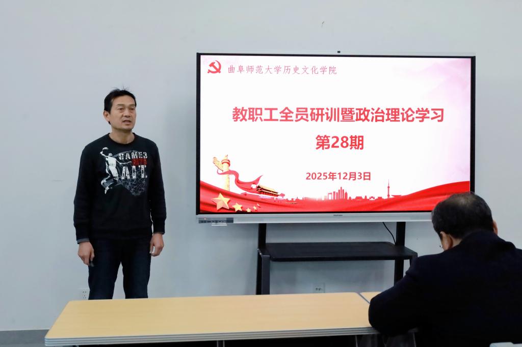 2025年12月3日下午,快猫视频在孔子书院B106教室举行教职工政治理论学习暨全员研训第28期活动。活动由党委学习委员孙锋主持并领学,快猫视频 在校教职工60余人参加活动。