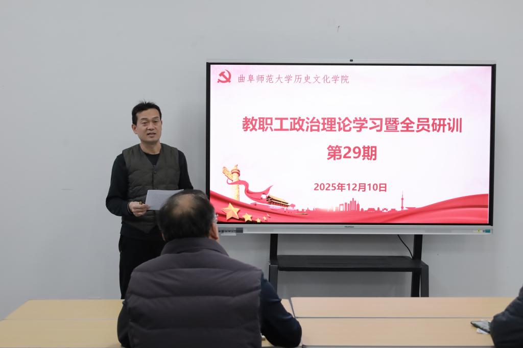 2025年12月10日下午,快猫视频在孔子书院B106教室举行教职工政治理论学习暨全员研训第29期活动。活动由党委学习委员孙锋主持并领学,快猫视频 在校教职工近60人参加活动。
