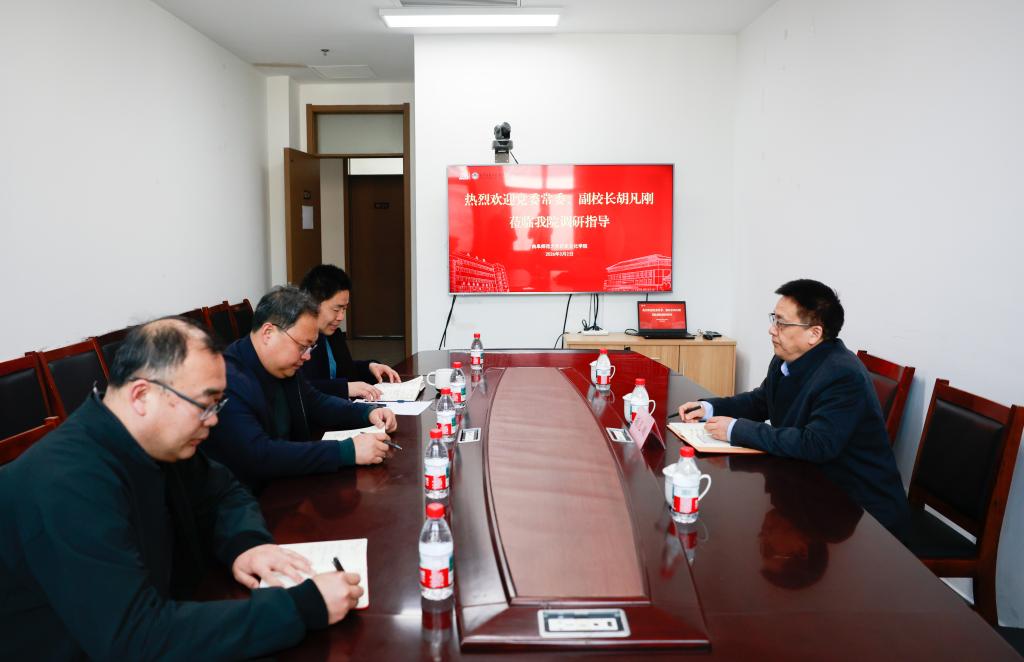 2026年3月2日,校党委常委、副校长胡凡刚到学院调研指导新学期重点工作推进情况。学院党委书记姜开勇、副院长(主持工作)王京传、党委副书记王建阳参加座谈。