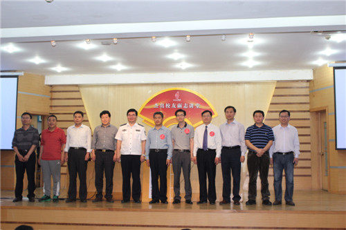 成积春对本次讲座做了总结,并感谢陈士渠的精彩演讲。副校长扈庆学为陈士渠赠送了手泥、纪念名单、在校期间的成绩卡作纪念。讲座结束后,各位领导与陈士渠合影留念。