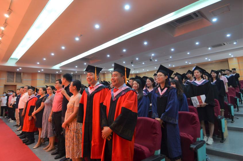 毕业典礼在雄壮的国歌声中拉开帷幕。学院党委书记姜开勇宣读了《快猫视频 关于授予学士、硕士和博士学位的决议》。