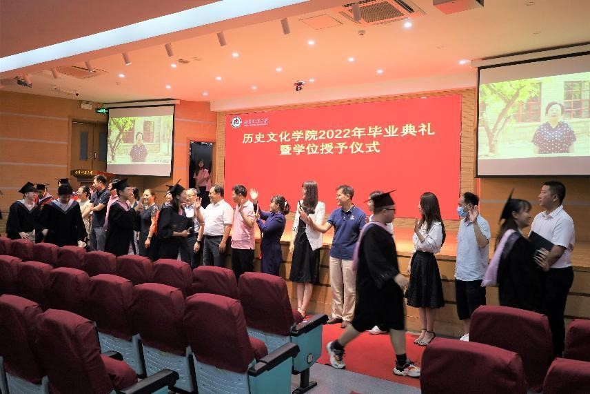 学院优秀校友国防科技大学军政基础教育学院教授,博士生导师刘凤建、济南历城二中校长,历城区教育局局长李新生、中国社科院海疆研究所王晓鹏、中央人民政府驻澳门特别行政区联络办公室王鑫、中国社科院大学孙萍、中央党史和文献研究院张兴宇以及陕西师范大学、吉林大学在读研究生校友代表 分别通过视频为毕业生们送上了嘱托与祝福。愿每一位学子都能够带着期许与梦想继续书写人生的精彩!